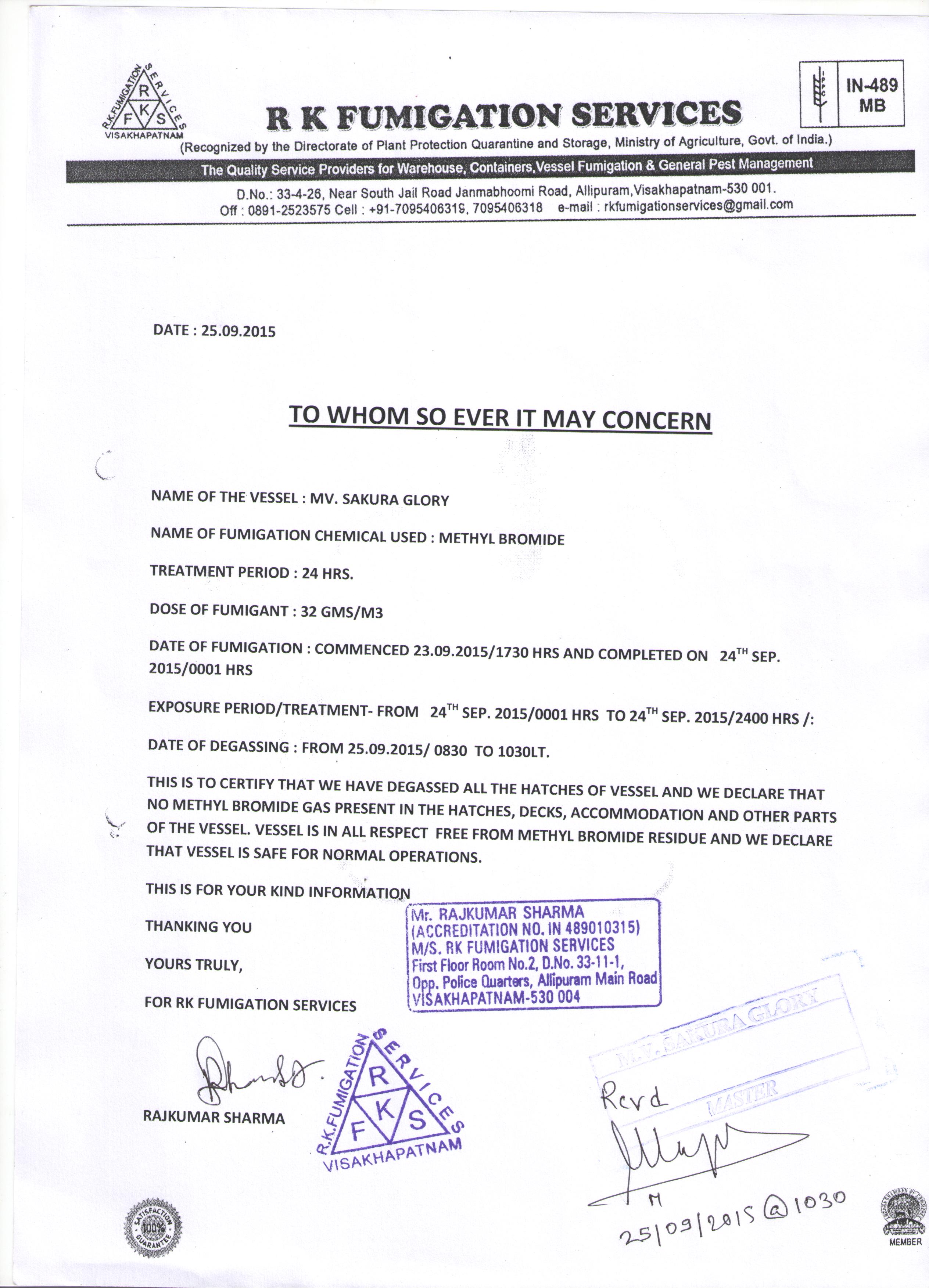 VESSEL FUMIGATION